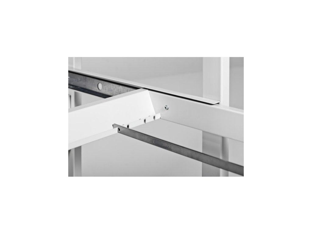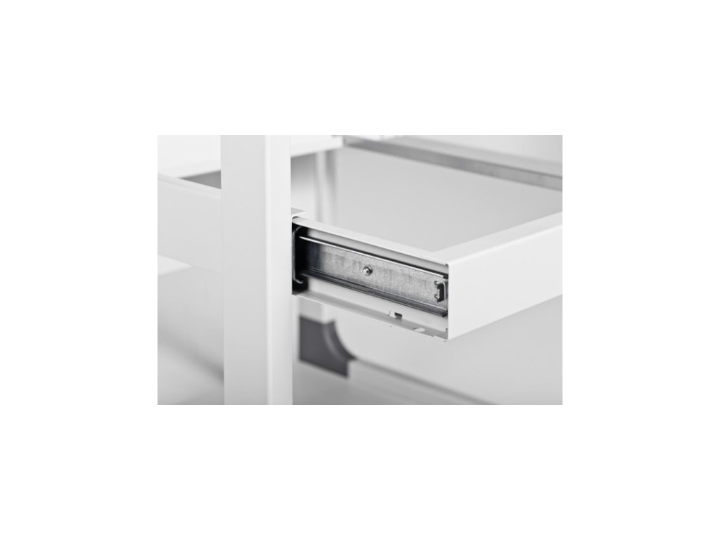 - Kartotéka je vybavena dvěmi policemi z toho dolní závěsný rám je s vysunutými teleskopickými lištami.