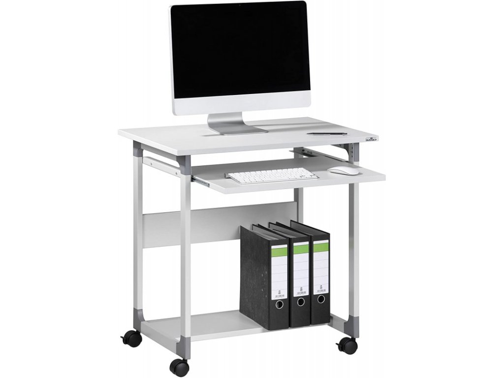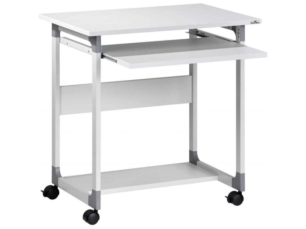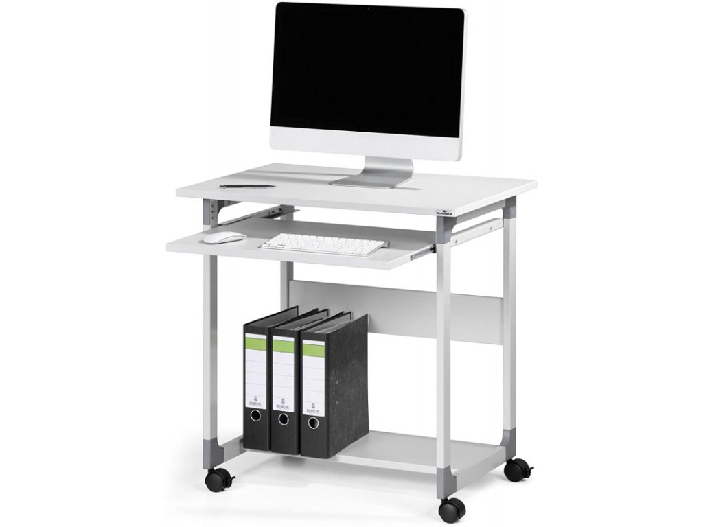 - Malý počítačový vozík se dvěma policemi a zasouvatelnou policií klávesnice.