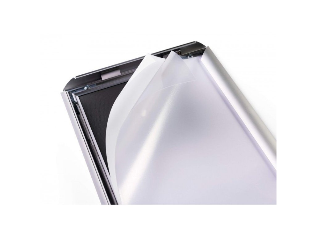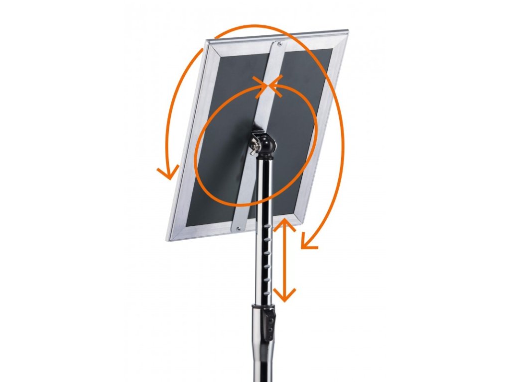 • Rychle sestavitelný informační stojan s robustním hliníkovým skládacím klip rámem DIN A4, stříbrně eloxovaný.