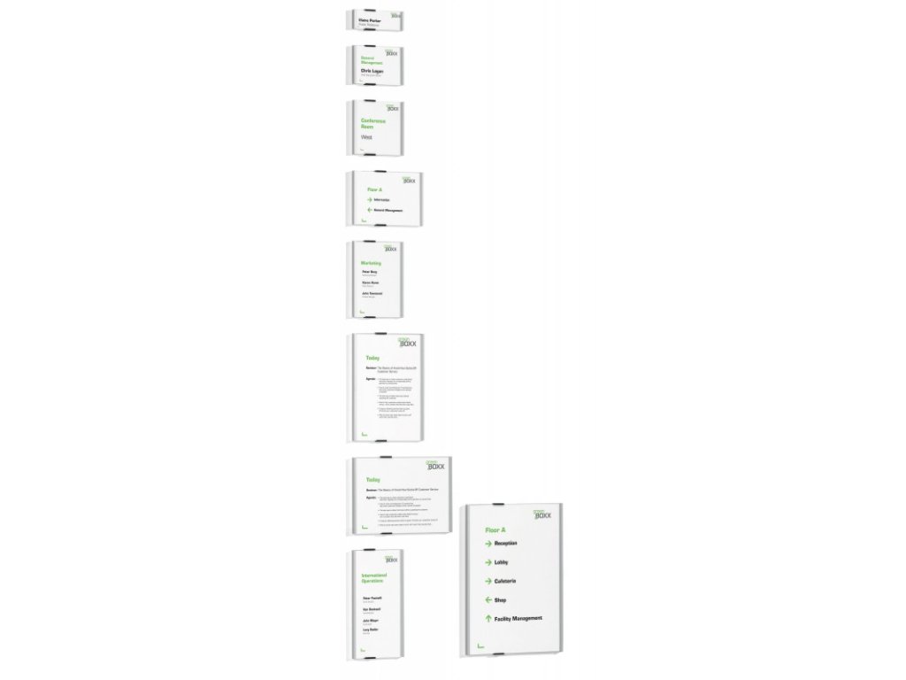 - Dveřní a nástěnná informační tabule s kvalitní hliníkovou zadní stranou a antireflexní krycí akrylovou tabulkou.