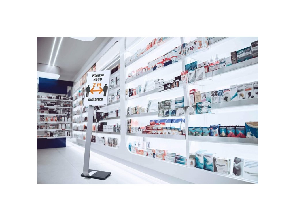 - reprezentativní podlahový stojan v kombinaci materiálů akryl – hliník s infotabulí ve formátu A3