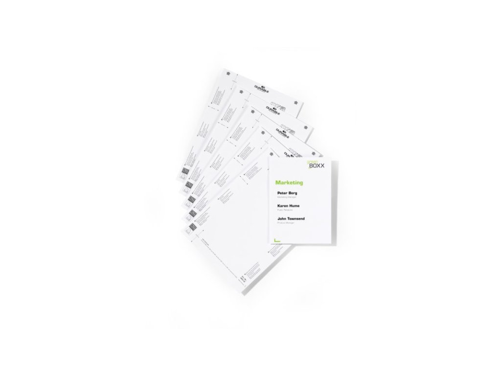 - Přílohy lze profesionálně tisknout pomocí softwaru INFO SIGN (stažení zdarma z www.durable.eu).