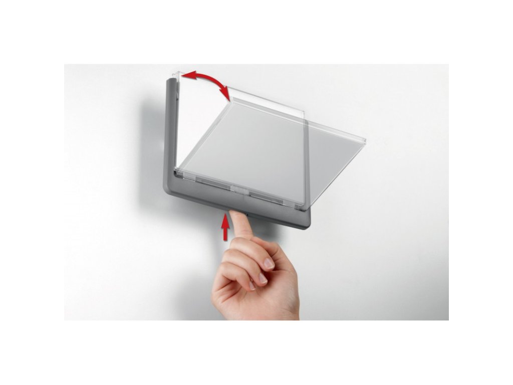 - Poté stačí ji opět posunout nahoru a zachytit zpět do rámečku. Informační štítek je k dostání ve 3 velikostech a obzvláště se hodí pro využití ve velkém množství např. ve vzdělávacích institucích, nemocnicích, gastronomii atd. K přišroubování nebo alternativně i k přilepení.