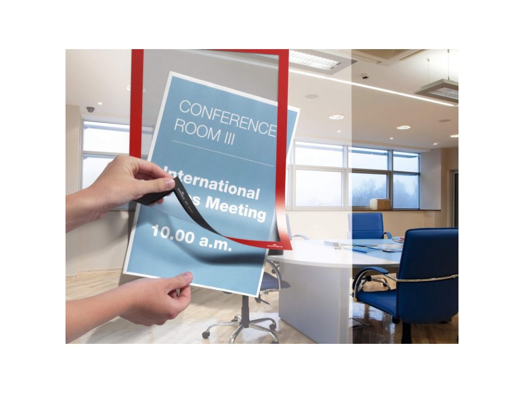 - Jednoduše umístěte na jakýkoliv hladký povrch, otevřete magnetický rámeček, vložte informační materiál a zavřete – toť vše.
