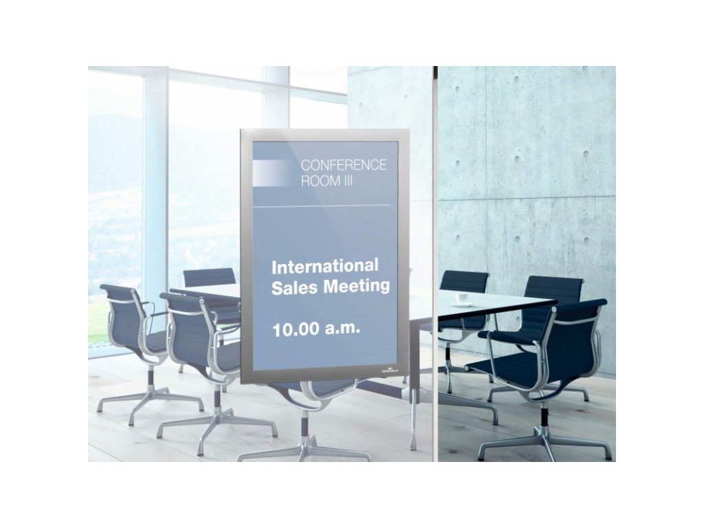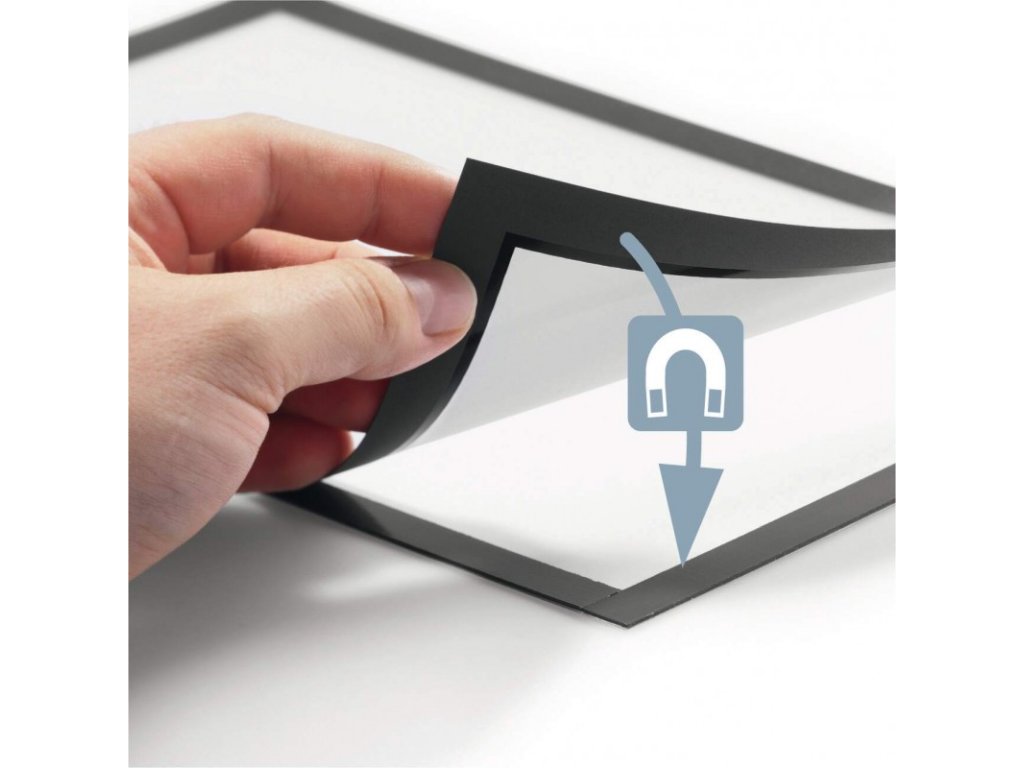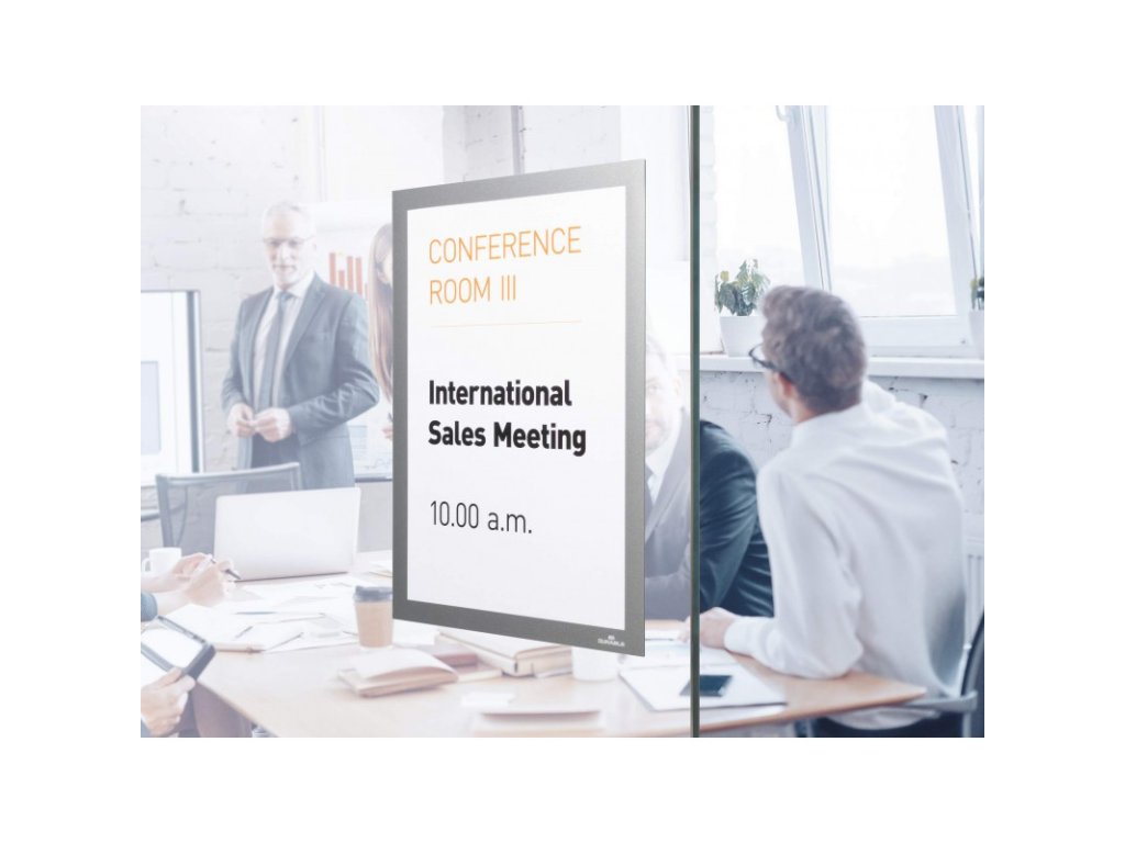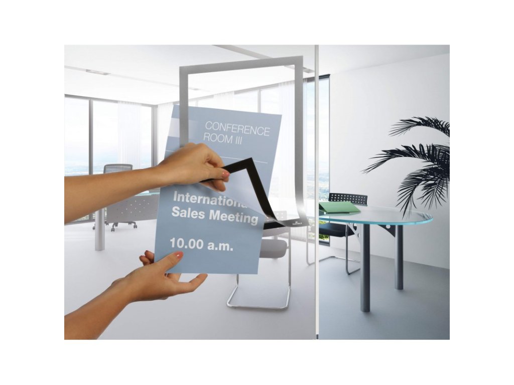 - Jednoduše umístěte na jakýkoliv hladký povrch, otevřete magnetický rámeček, vložte informační materiál a zavřete – toť vše.