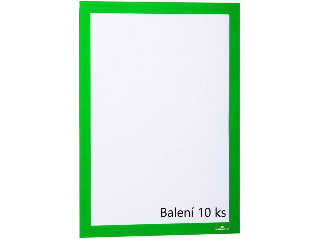 Durable 4882, samolepící inforámeček DURAFRAME A4 zelený, bulk balení 10 ks