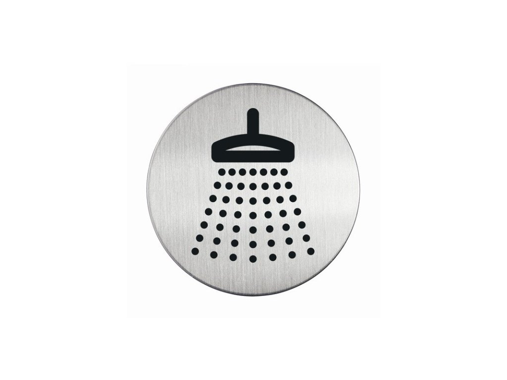 DURABLE 4938, kulatý nerezový piktogram Sprcha, průměr 83 mm samolepící