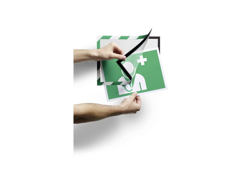 - Dvoubarevný samolepící rámeček s magnetickou střední částí pro zobrazení všech typů bezpečnostních a výstražných informací.