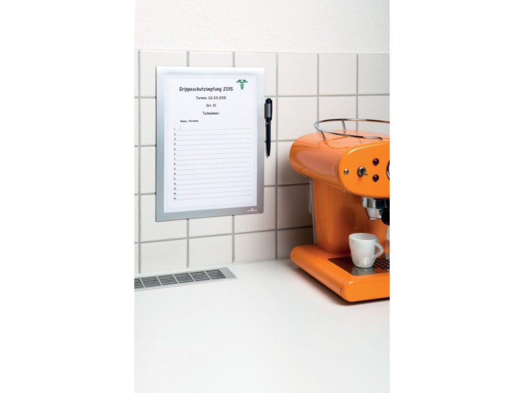 - Duraframe Note - informační rámeček tentokrát v provedení se zadní samolepící stranou a předním magnetickým rámečkem bez folie pro formáty A4.