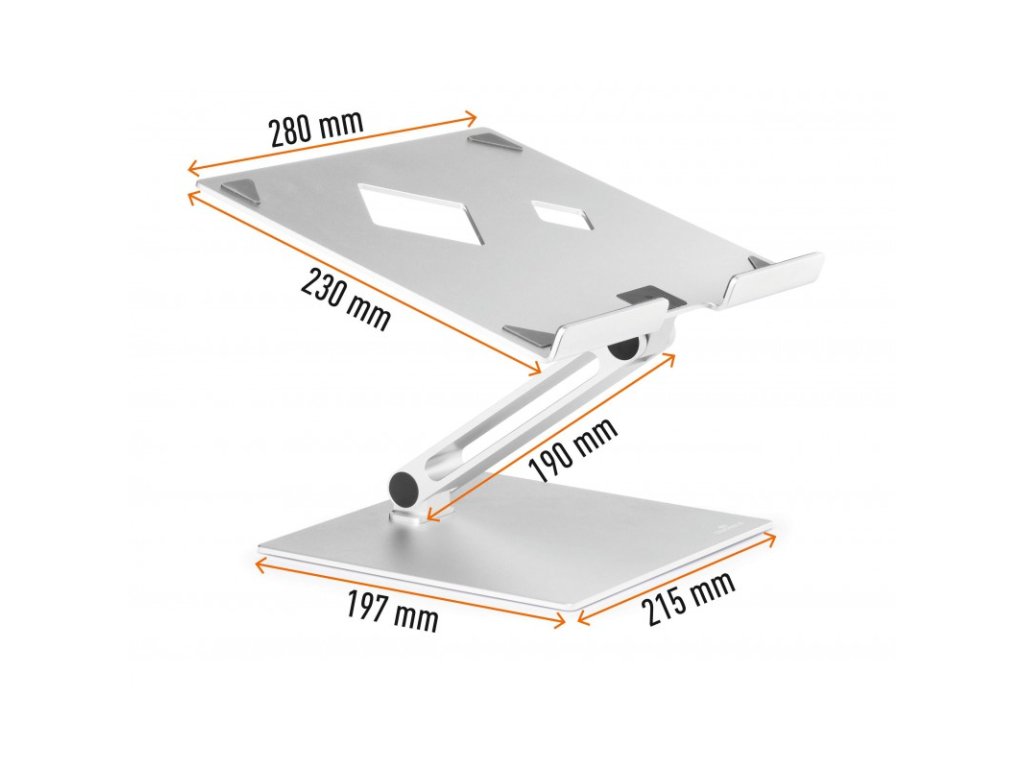 Durable 5050, Stolní ergonomický držák notebooku LAPTOP STAND RISE, stříbrný hliník