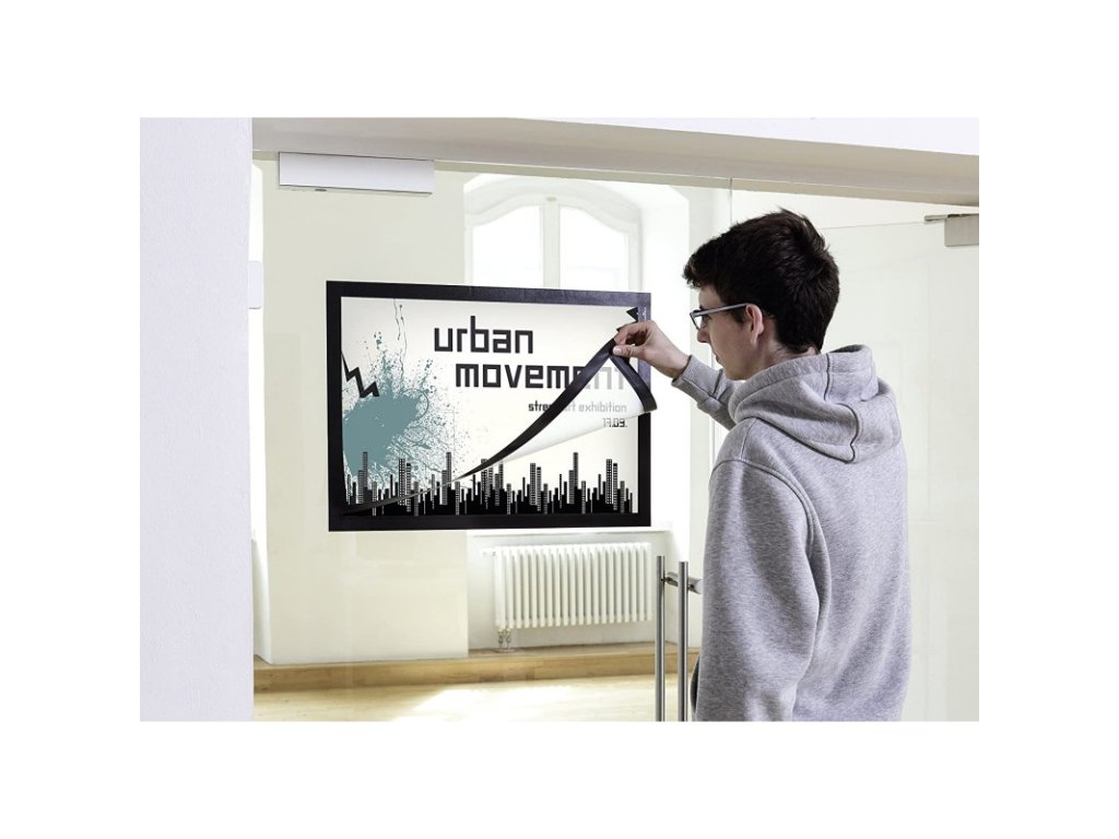 - Rychlé vkládání a výměna plakátů díky výklopnému magnetickému rámečku