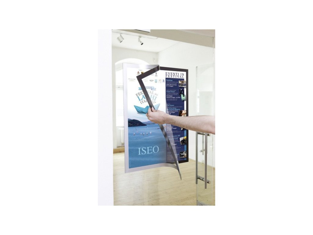- Rychlé vkládání a výměna plakátů díky výklopnému magnetickému rámečku
