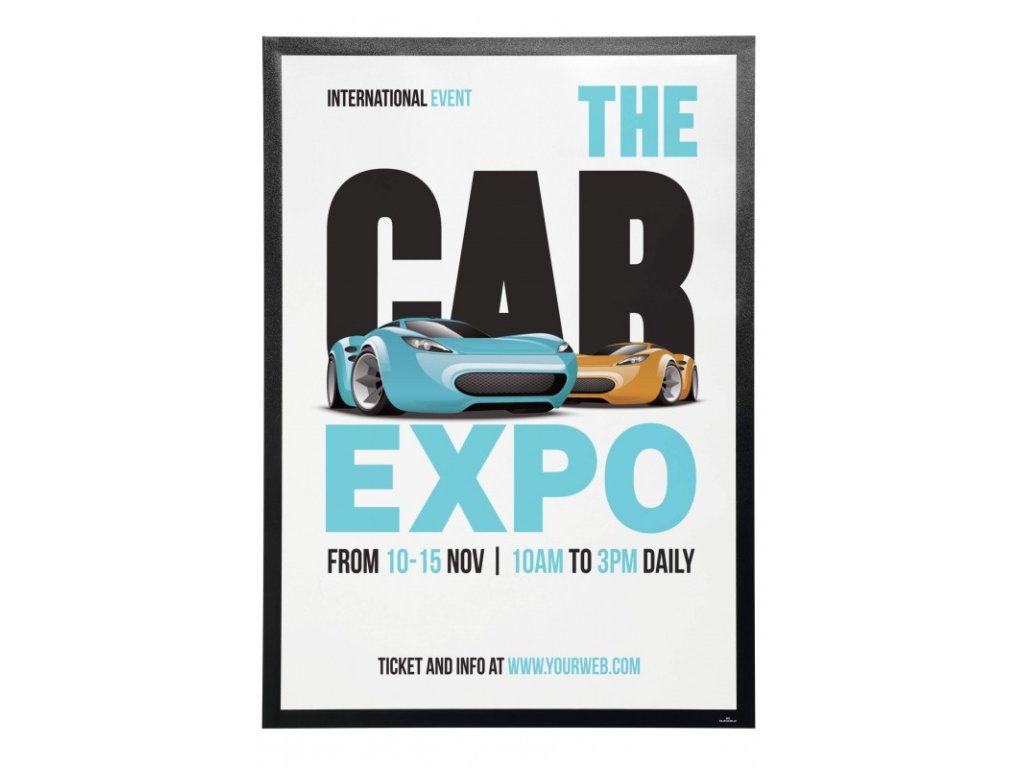 - Rychlé vkládání a výměna plakátů díky výklopnému magnetickému rámečku