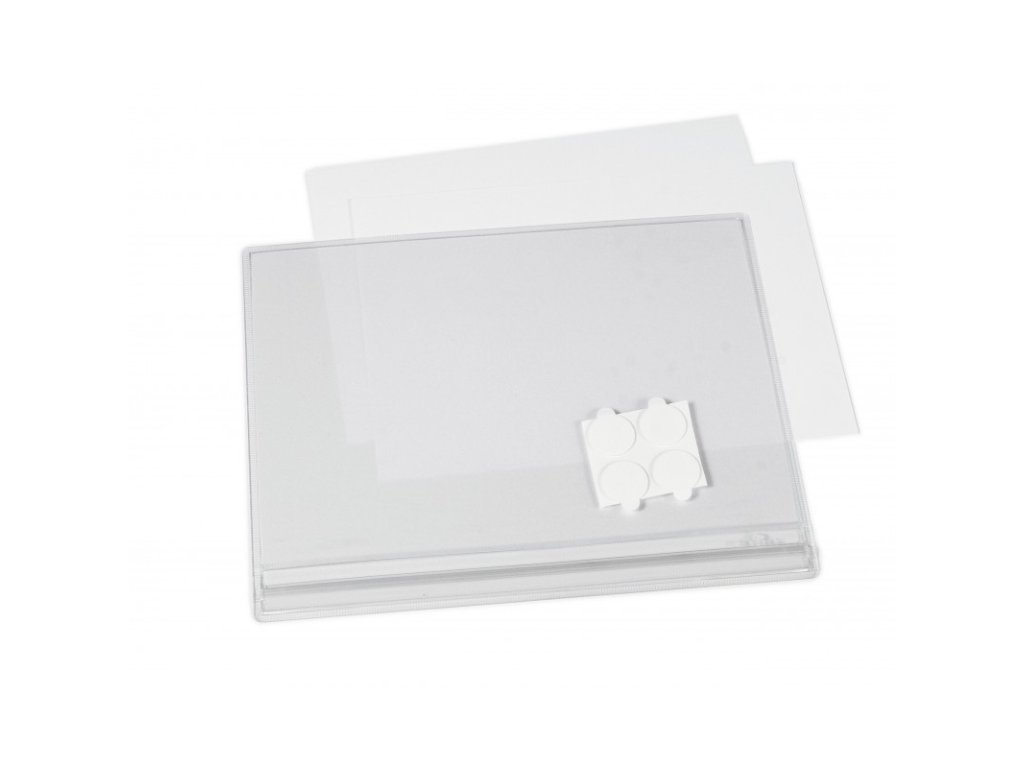 - Upevnění: Fixace průhledné kapsy díky beze zbytku znovu odstranitelným samolepicí podložce ve vysoce transparentním vzhledu;