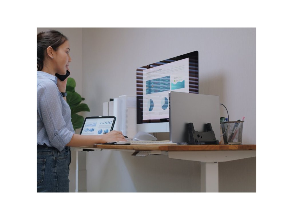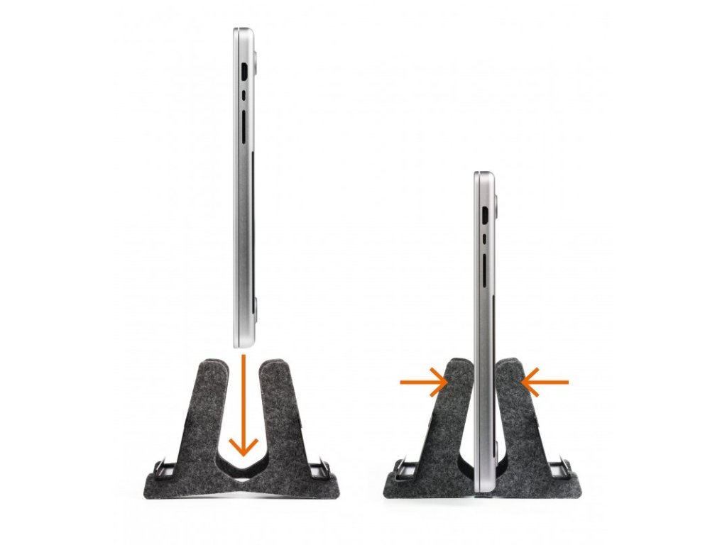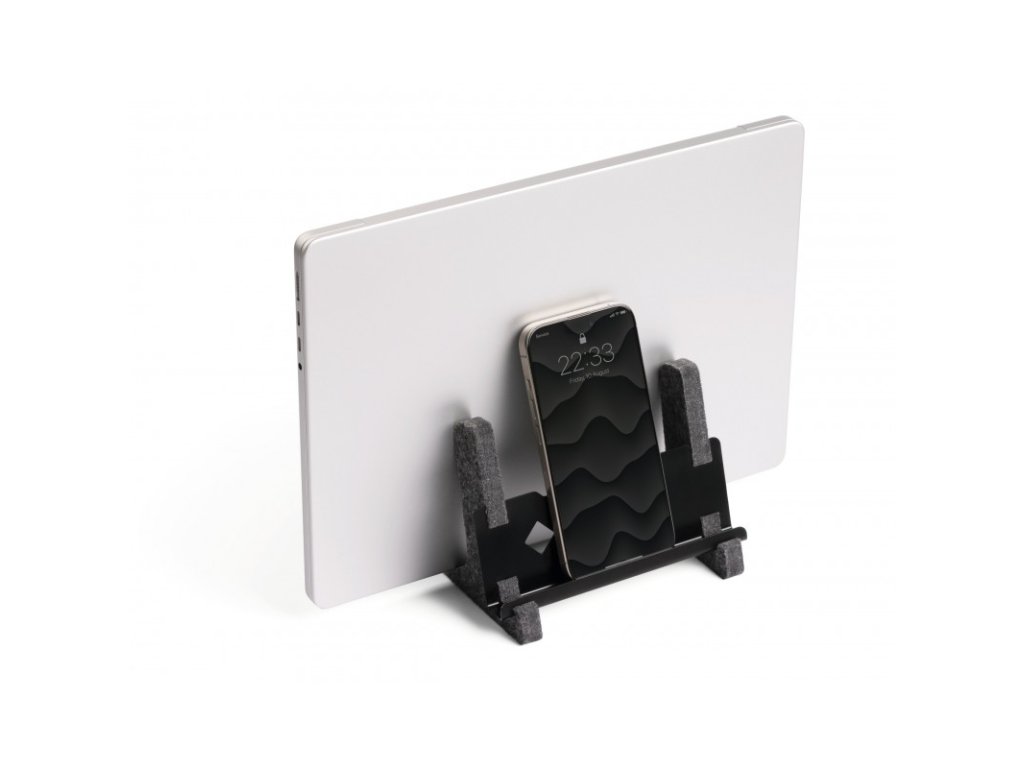 - Prostorově úsporný design: Vertikální umístění notebooku optimalizuje využití pracovní plochy a udržuje stůl přehledný a organizovaný.