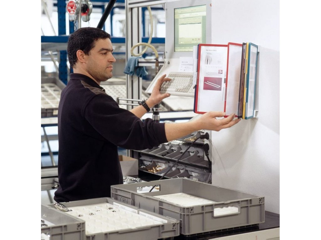 - Nástěnný držák č. 5676, včetně 20 polypropylenových tabulí č. 5606 (po 5 kusech v černé, červené, žluté, zelené a modré barvě) i s 20 jezdci, šířka 58 mm (č. 5609).