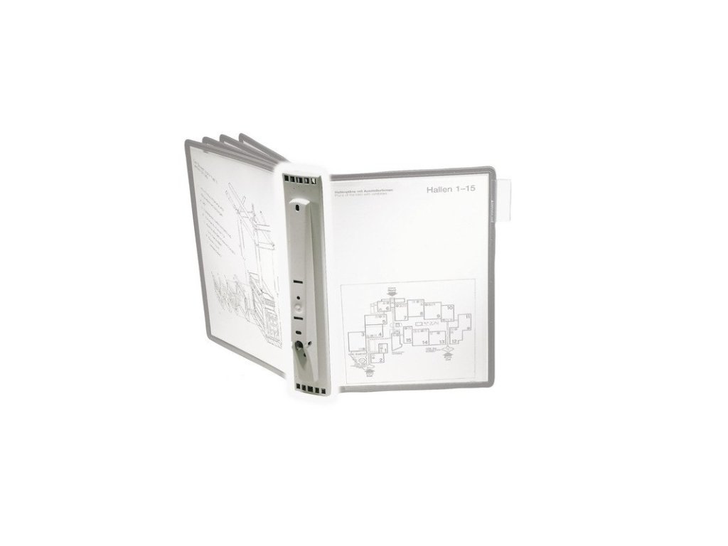 - Držák pro 5 tabulí formátu A4 k montáži na zeď nebo ke kombinaci se stolním stativem SHERPA 5678.