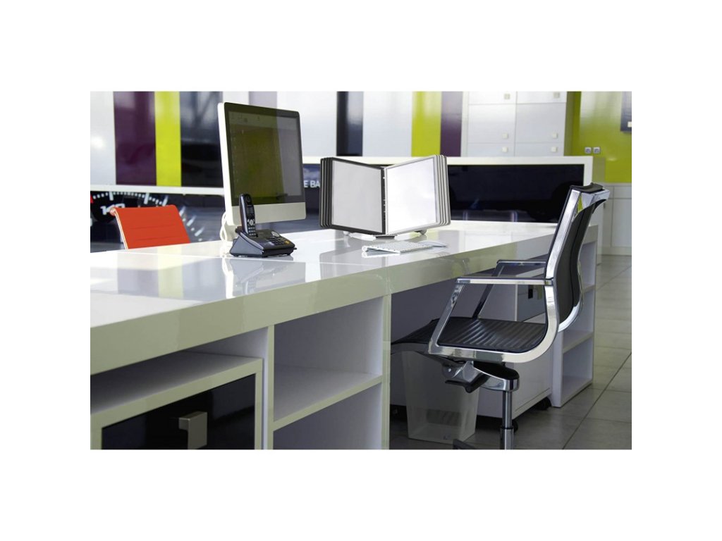 - Skládá se z modulového stolního stojanu pro 10, 20 nebo 30 tabulí formátu A4 s profilovanými rámečky (obj. č.: 5606, 5590) a plastovými jezdci s popisovacími štítky.