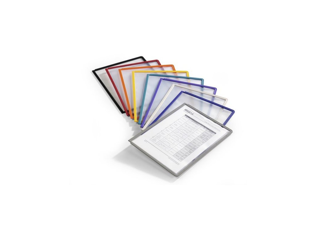 - Nástěnný držák pro 5 tabulí A4 s nastavitelnými bočními díly pro změnu čtecího úhlu.