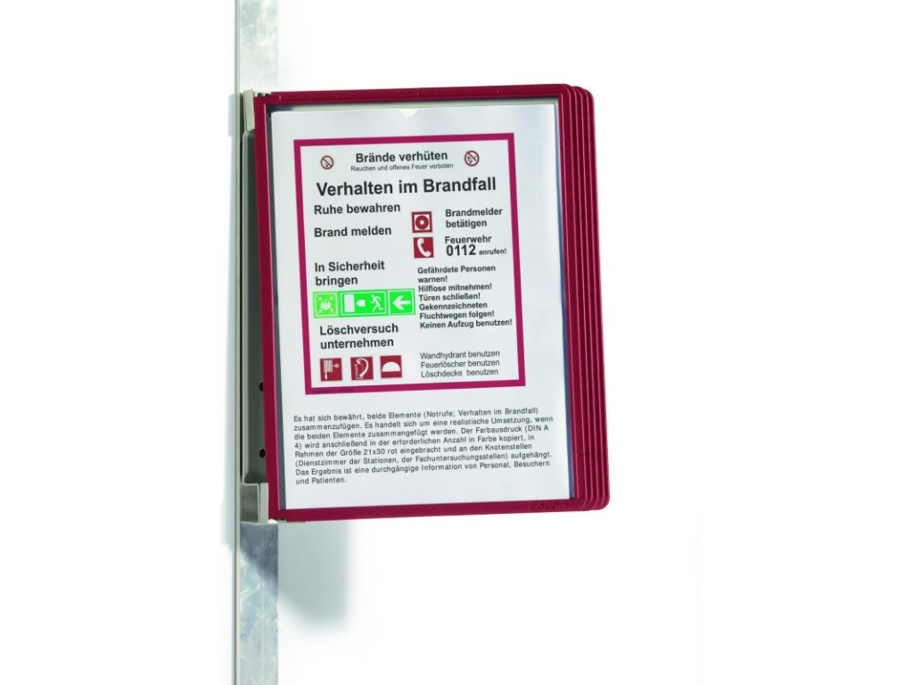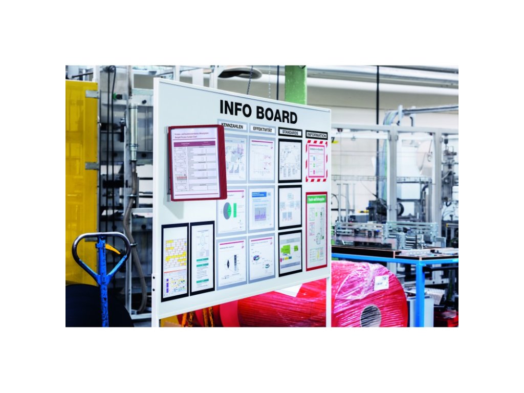 - Nástěnný systém - Magnetický nástěnný kovový držák a 5 tabulemi na dokumenty. S kolíkovou mechanikou pro snadnou výměnu.