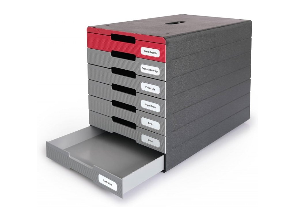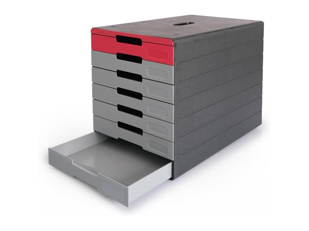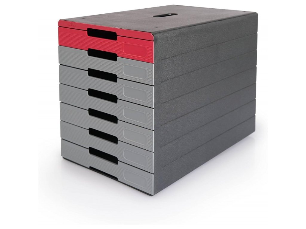 Durable 7763, úložný box na stůl IDEALBOX PRO 7, antracitová/červená- 7 zásuvek