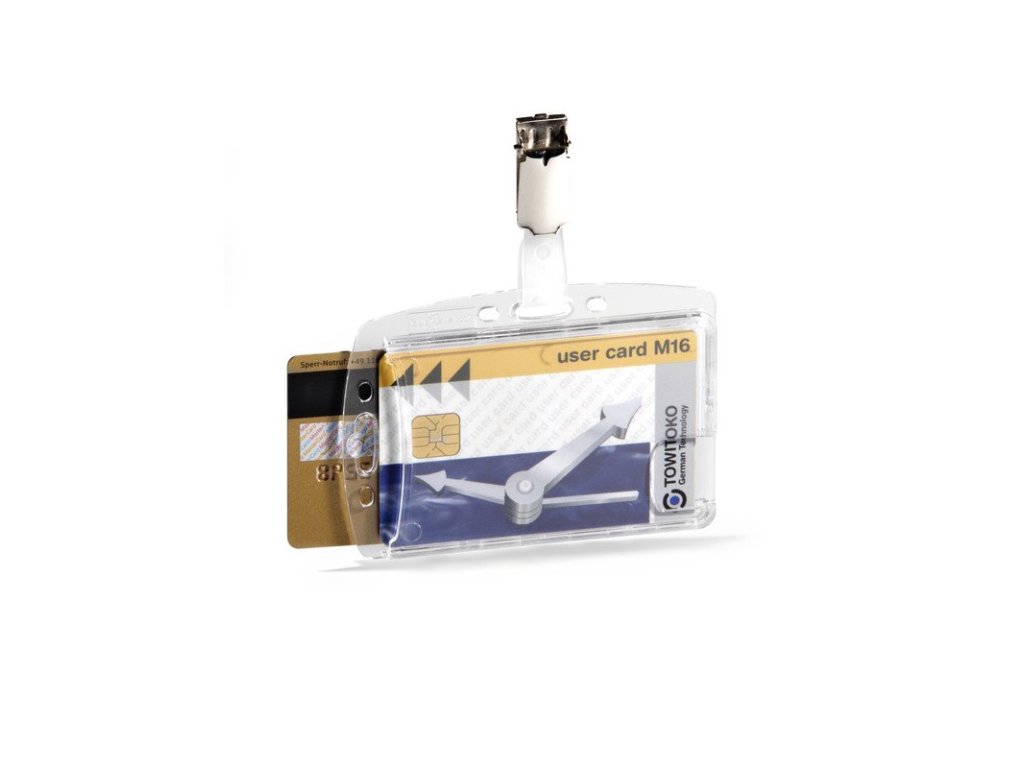 DURABLE 8013, čiré akrylové pouzdro na 2 karty s otočným klipem, 54x85 mm