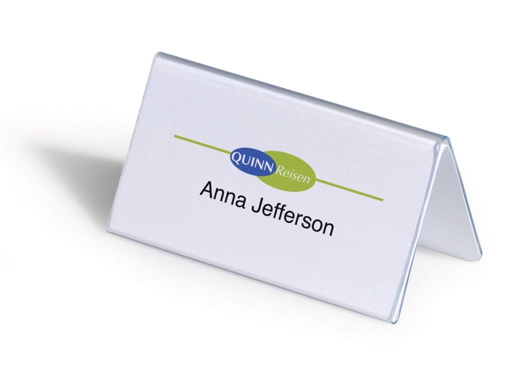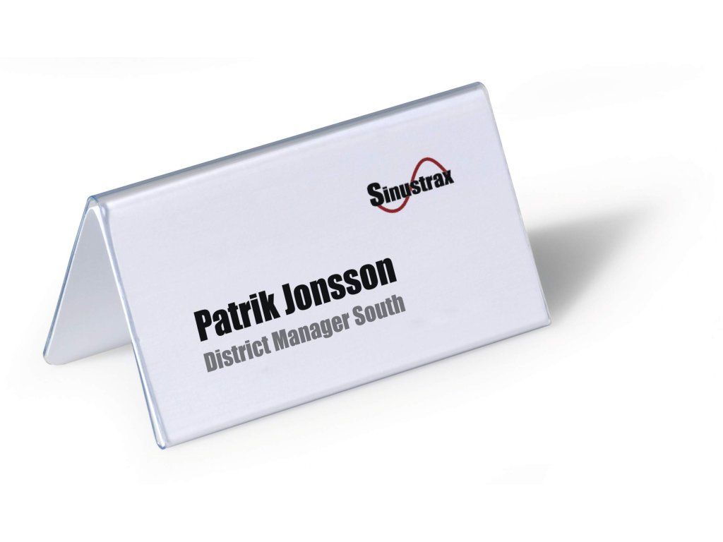 Durable 8051 stolní jmenovka 52×100 mm, oboustranná „stříška“, transparentní