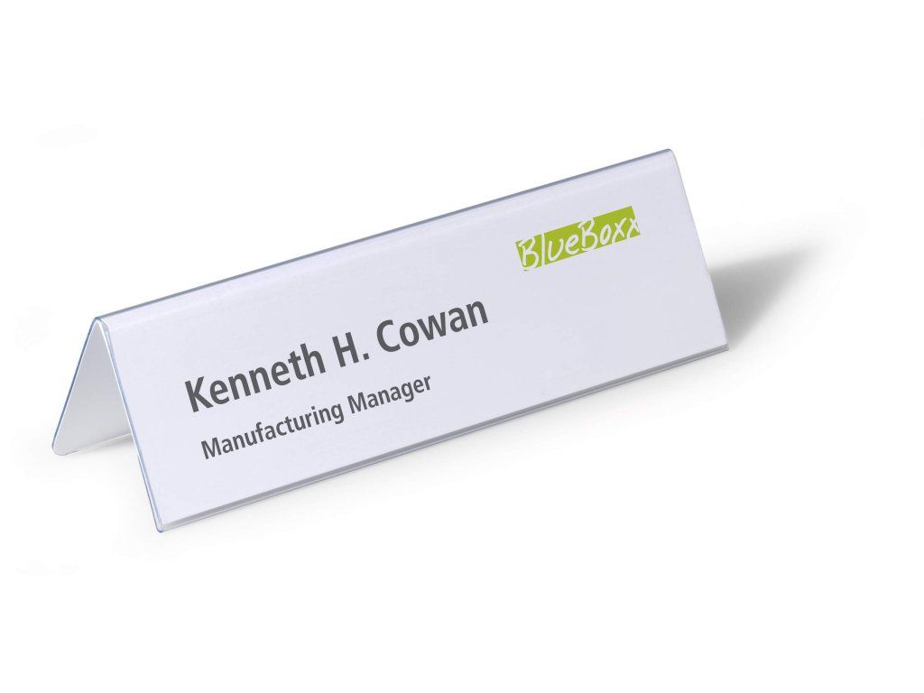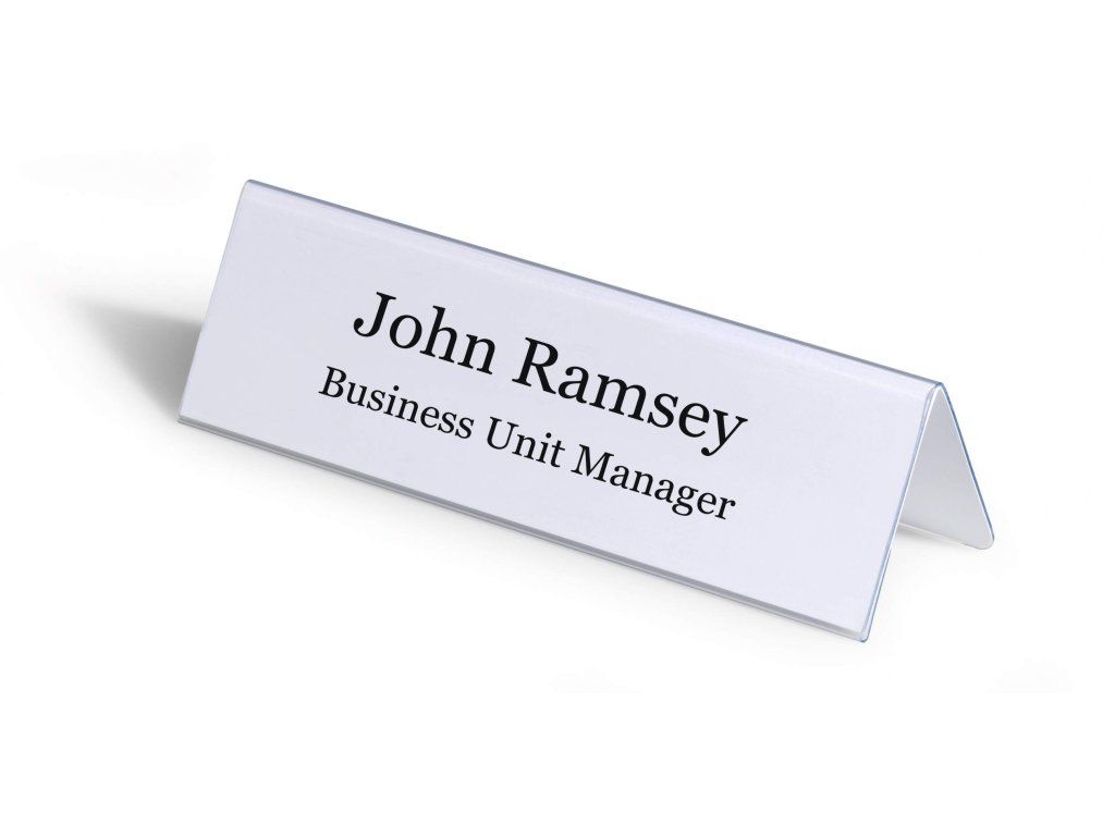 Durable 8052 stolní jmenovka 61×210 mm, oboustranná „stříška“, transparentní