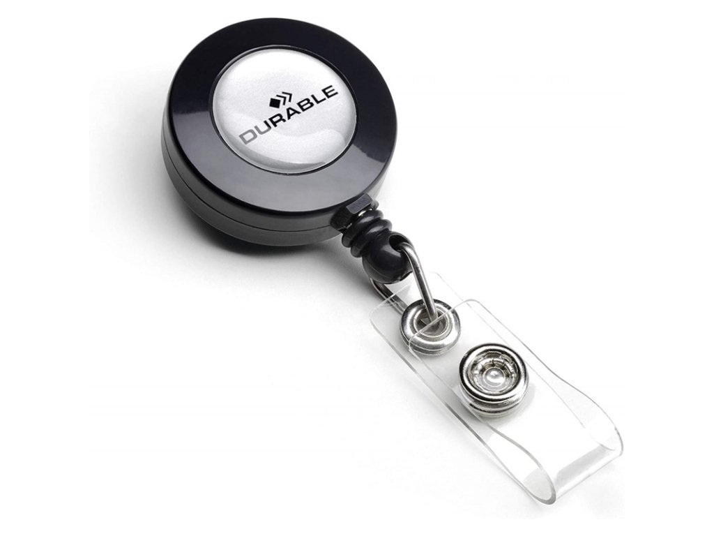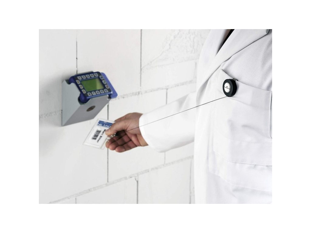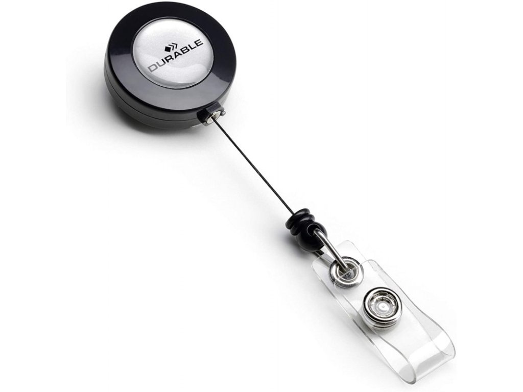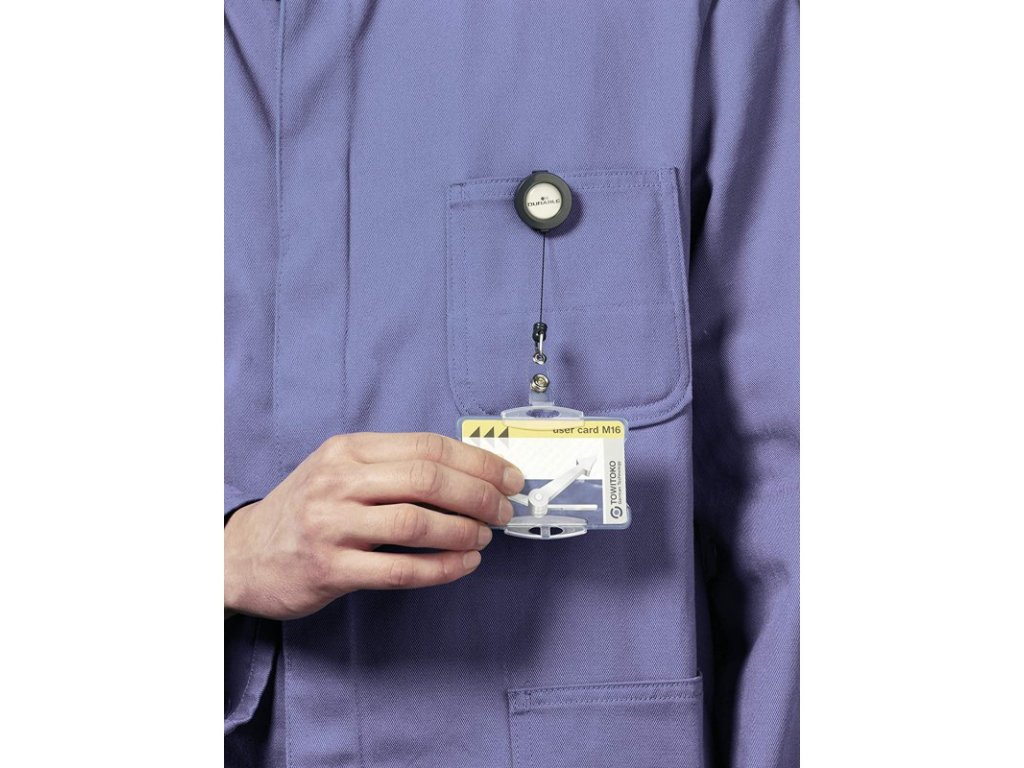 - Držák na průkazy se spolehlivou navíjecí mechanikou pevně udrží jmenovky a přístupové karty.