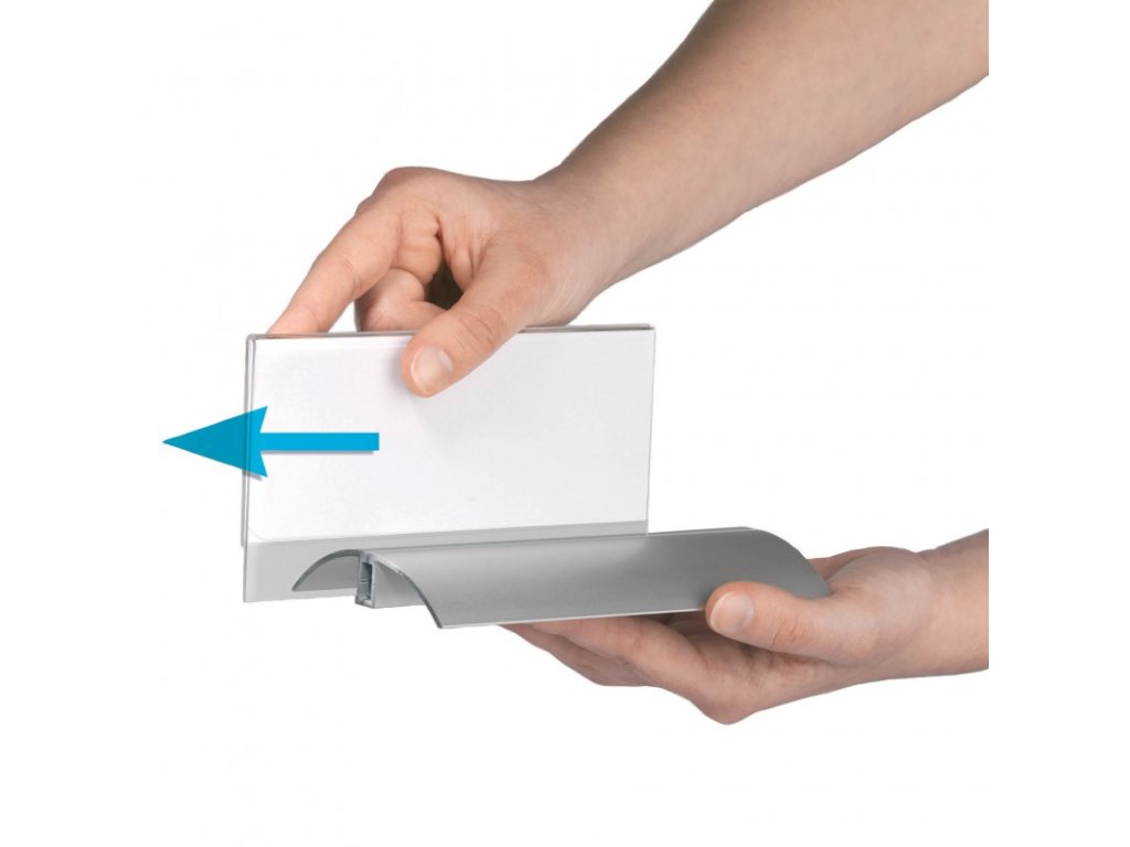 - Jedinečný svěrný systém pevně drží akrylový štítek a umožňuje snadnou výměnu vkládacího štítku.