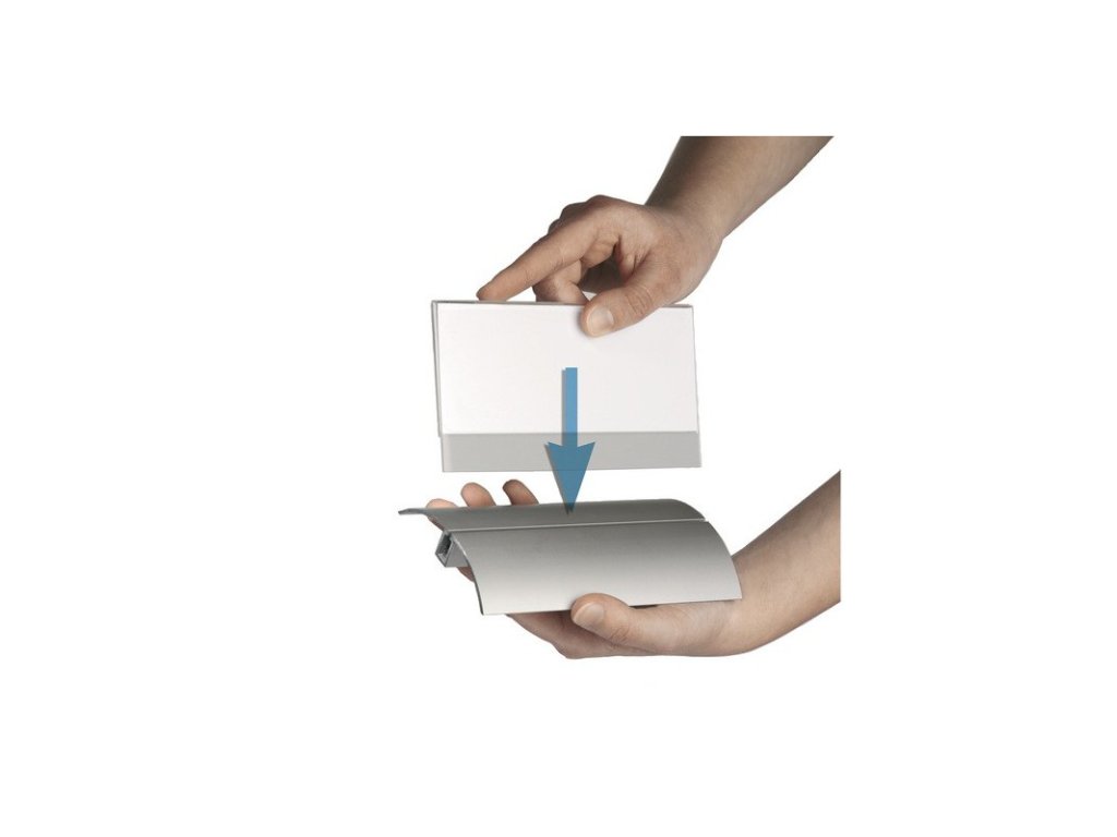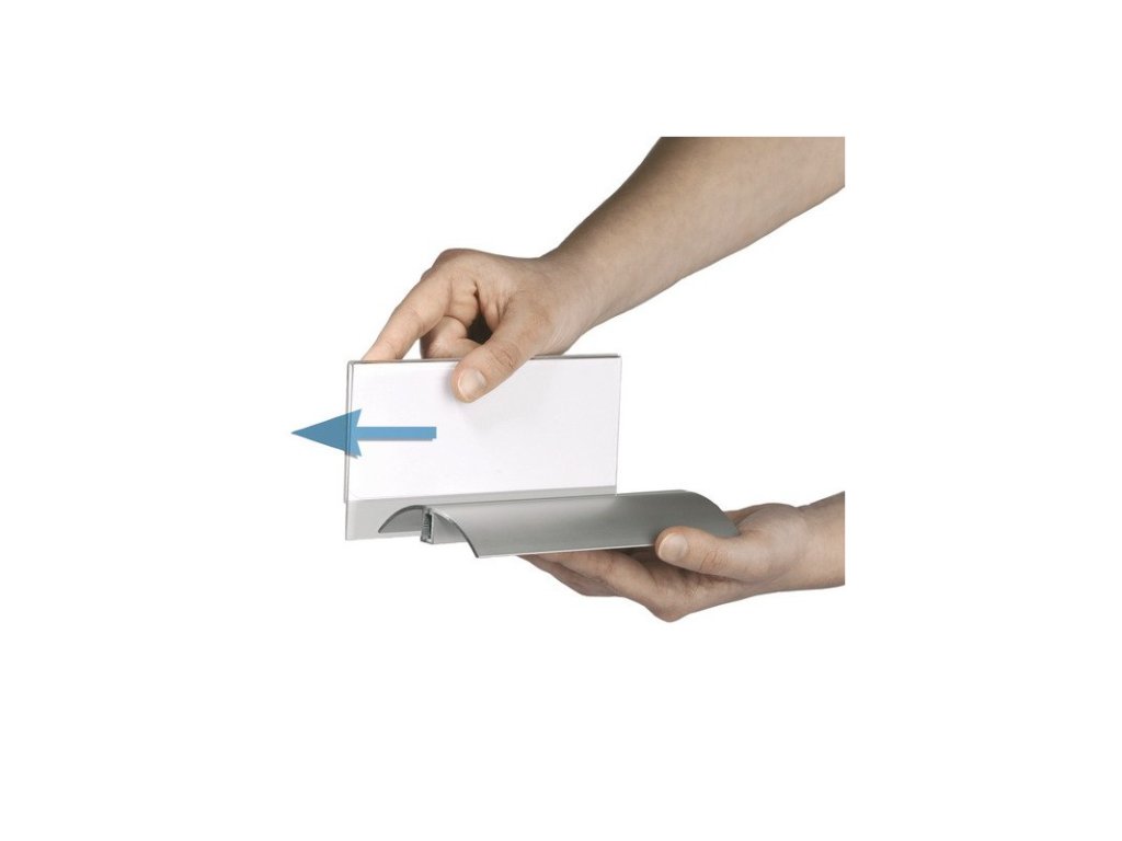 - Jedinečný svěrný systém pevně drží akrylový štítek a umožňuje snadnou výměnu vkládacího štítku.