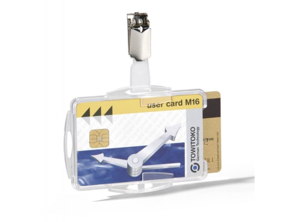 DURABLE 8218, dvojité pouzdro na karty 54x85 mm s otočným klipem