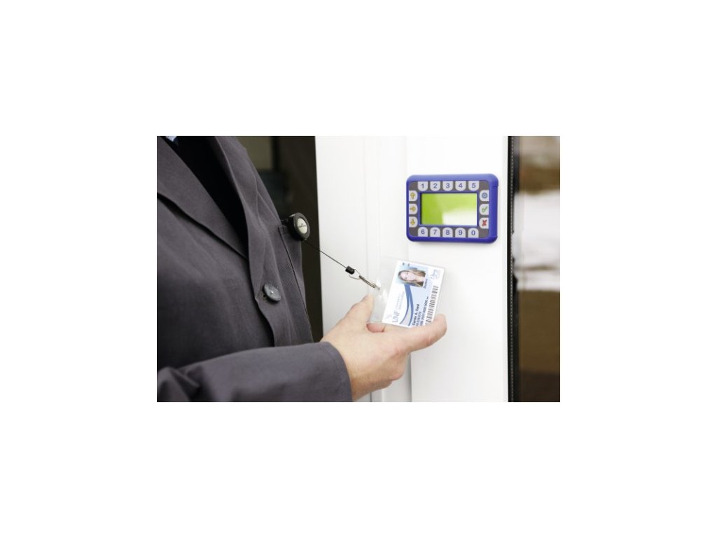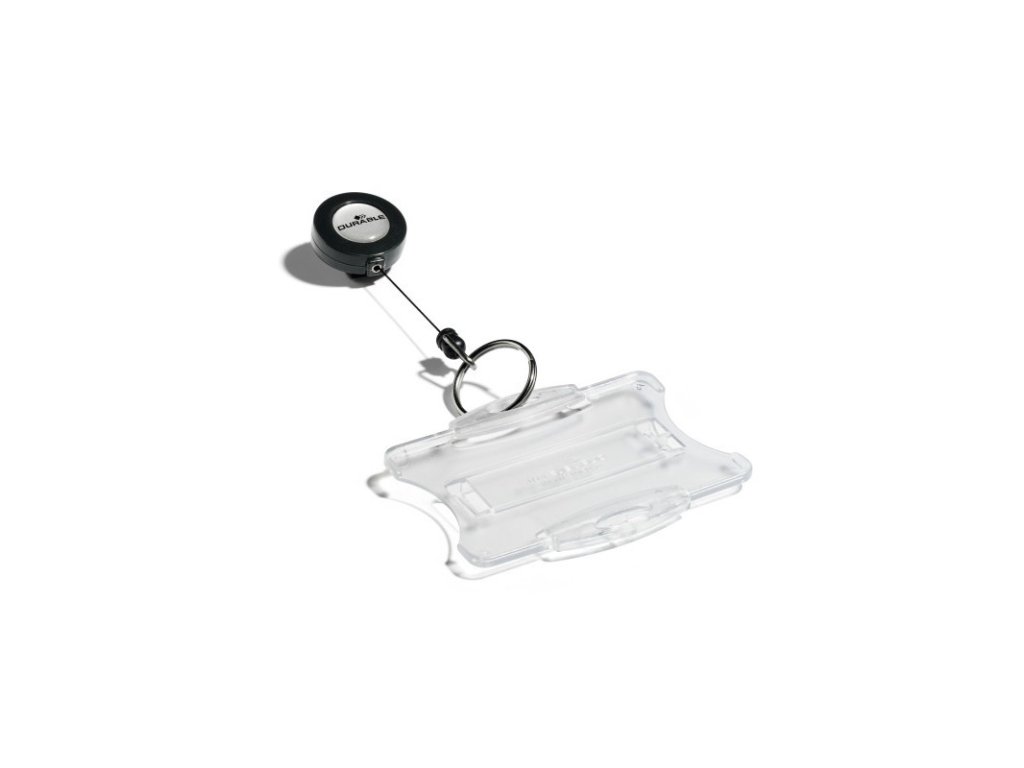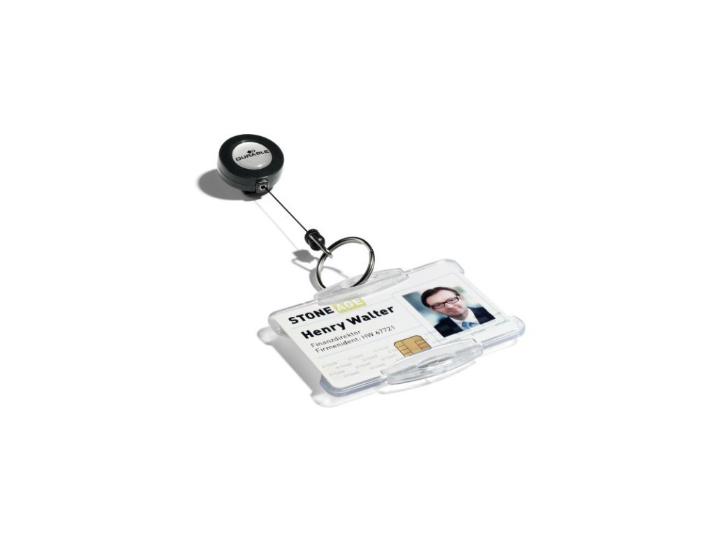 - Držák na průkazy se spolehlivou navíjecí mechanikou pevně udrží jmenovky a přístupové karty.