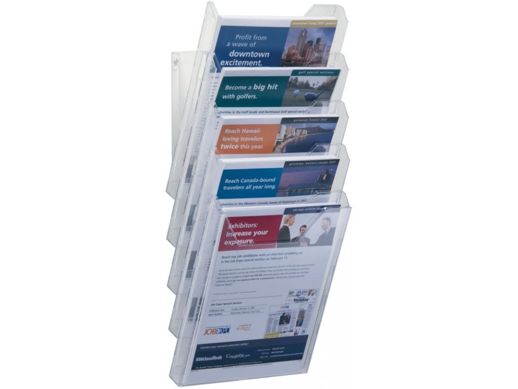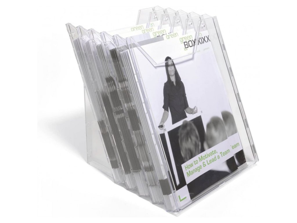 - Inteligentní flexibilní systém držáků na prospekty. S malým počtem elementů můžete vytvářet neomezené množství kombinací pro různé formáty i účely.