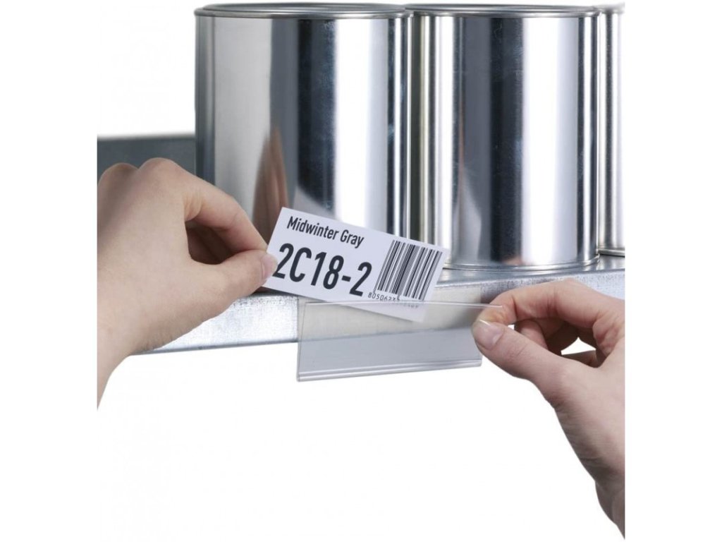 - Vlastnosti: Samolepicí; boční a horní otevírání; snadné vkládání i vyjímání štítků; vhodné pro zobrazování cen a informací o produktu; lze dle potřeby zkrátit na požadovanou velikost;