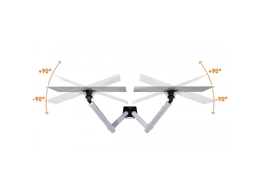 - Ergonomická práce díky individuálnímu a plynulému nastavení výšky, sklonu a polohy obrazovek