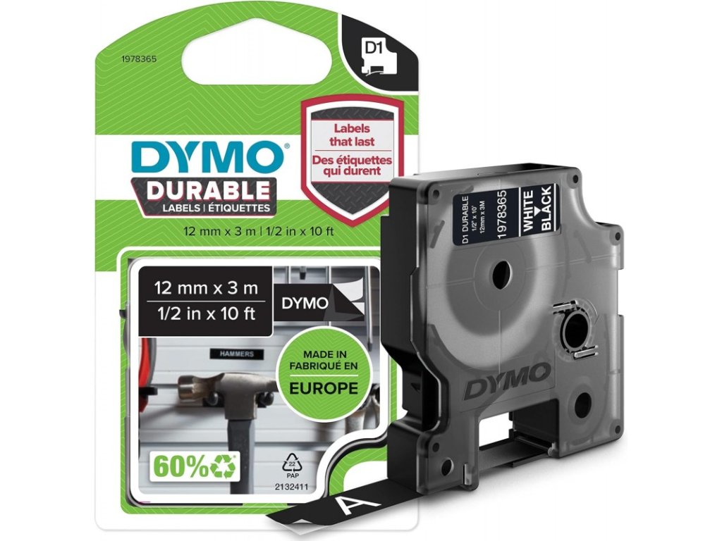 DYMO 1978365 vinylová páska 12mm x 3m typ D1, bílá na černé