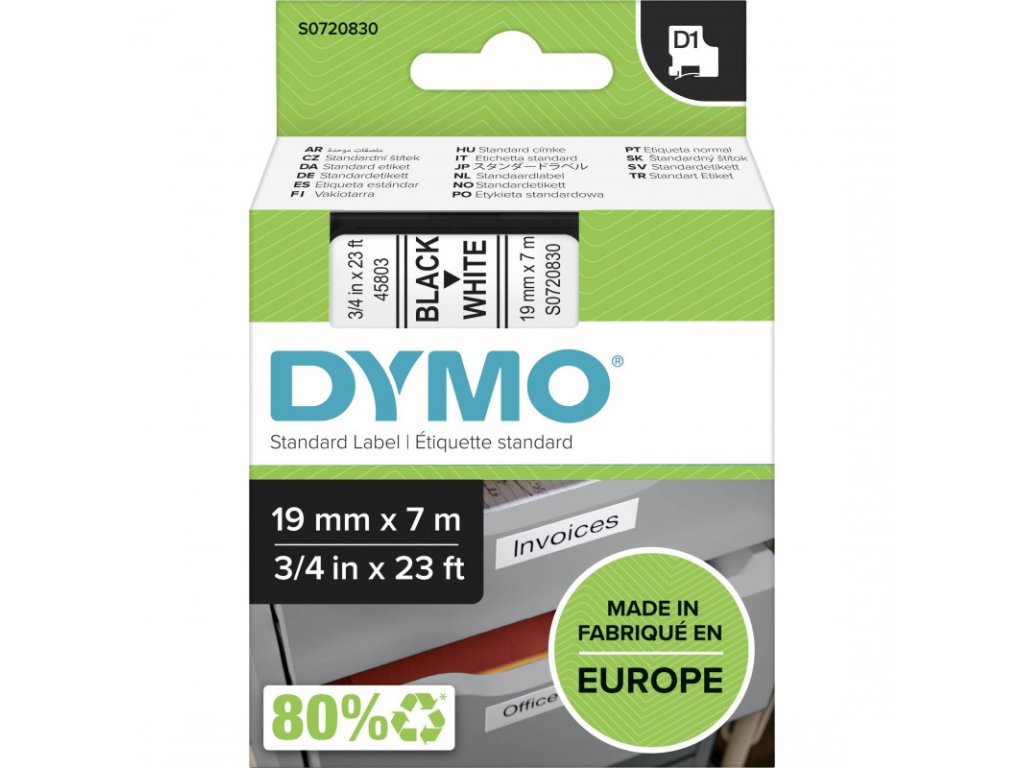 - DYMO S0720830 D1 Label Cassette, Self-Adhesive Labels for the LabelManager Printer, 19 mm x 7m Roll - Black on White19 mm x 7 m