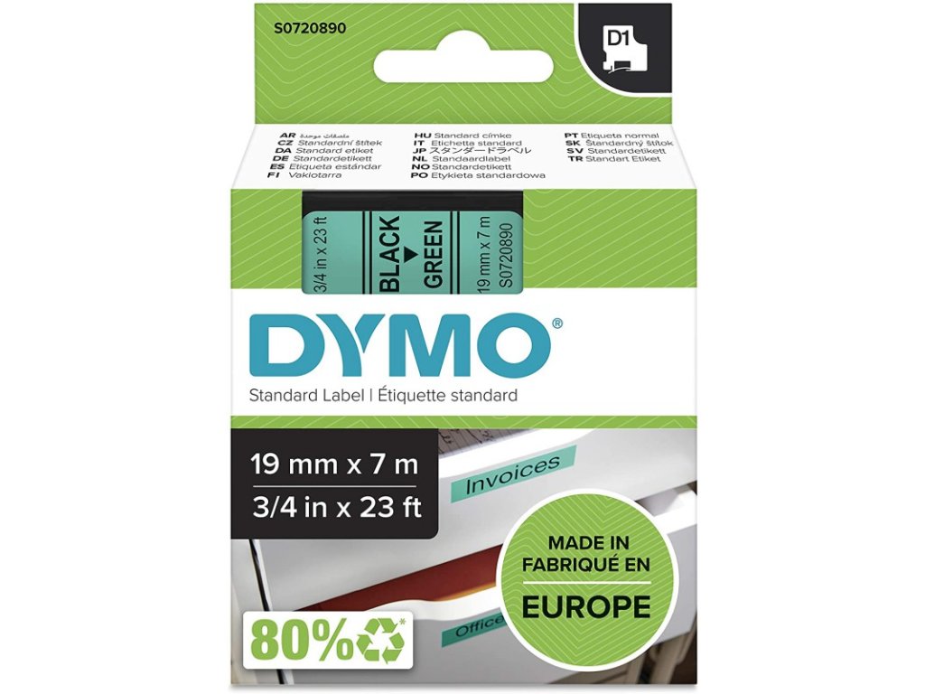 DYMO 45809 polyester páska 19mm x 7m typ D1, černá na zelené, S0720890