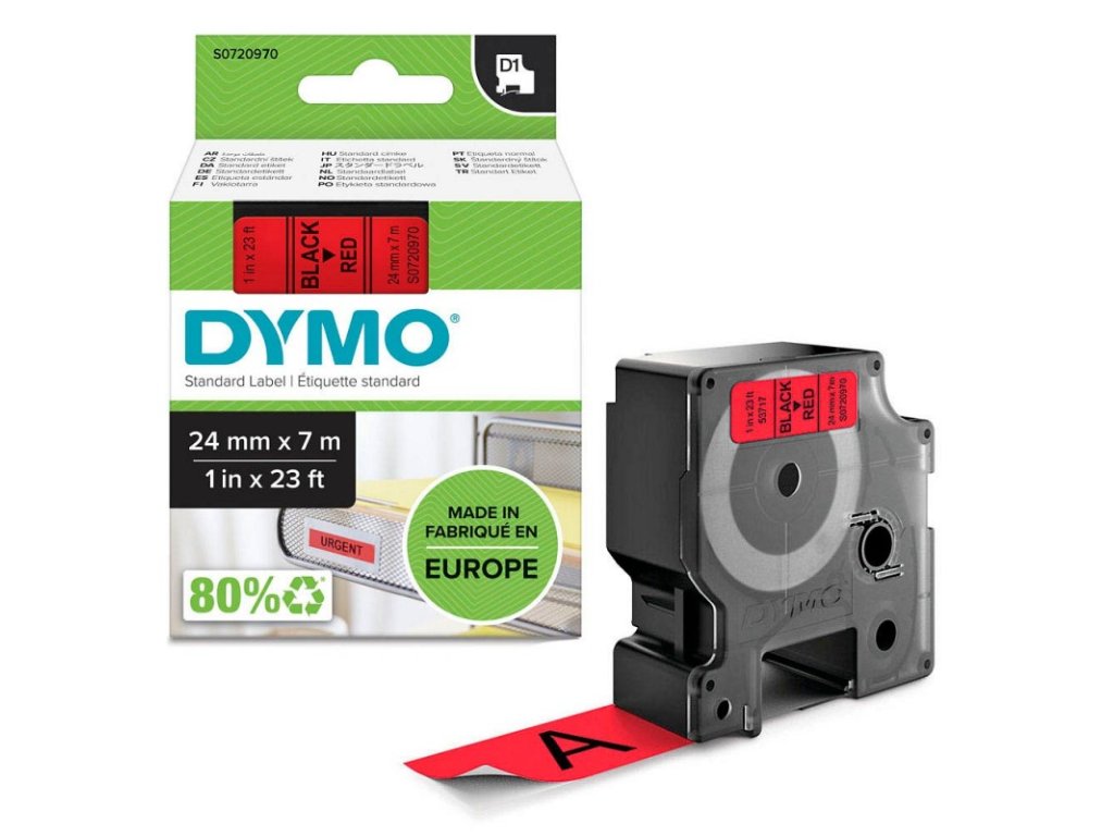 DYMO 53717 polyester páska 24mm x 7m typ D1, černá na červené, S0720970