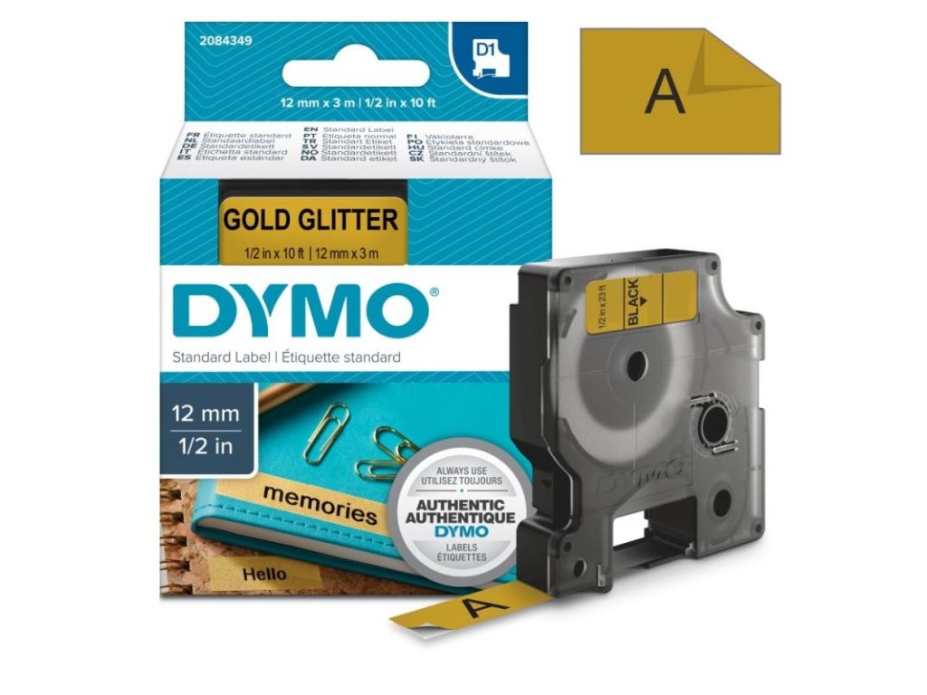 - Páska Dymo D1, 12mm (45023) zlatá, černý tisk, 3m
