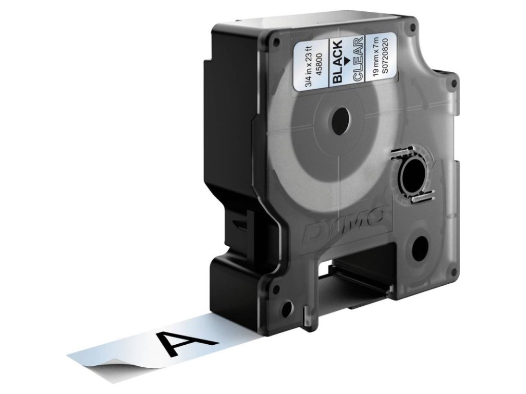 - DYMO S0720820 D1 Label Cassette, Self-Adhesive Labels for the LabelManager Printer, 19 mm x 7m Roll - Black on Clear19 mm x 7 m