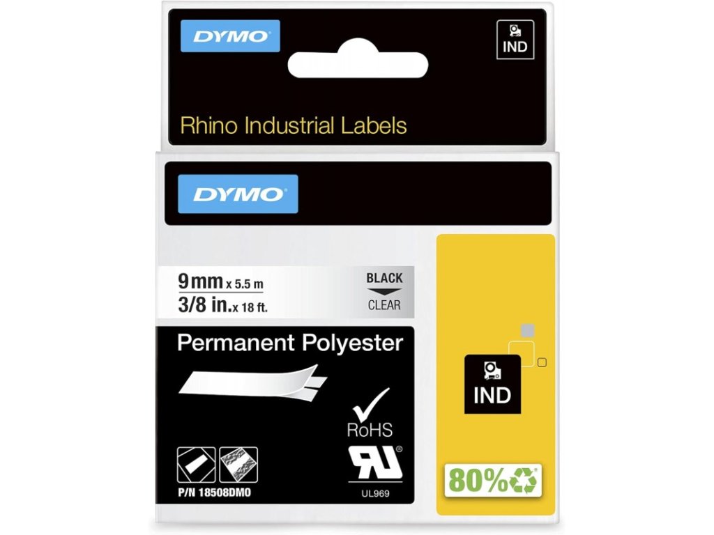 Dymo štítky 18508 permanentní polyesterová páska RHINO D1 9 mm x 5,5 m, černá na průhledné