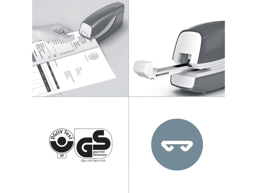 - Používání elektrických drátků Leitz e1 garantuje bezproblémové sešití.
