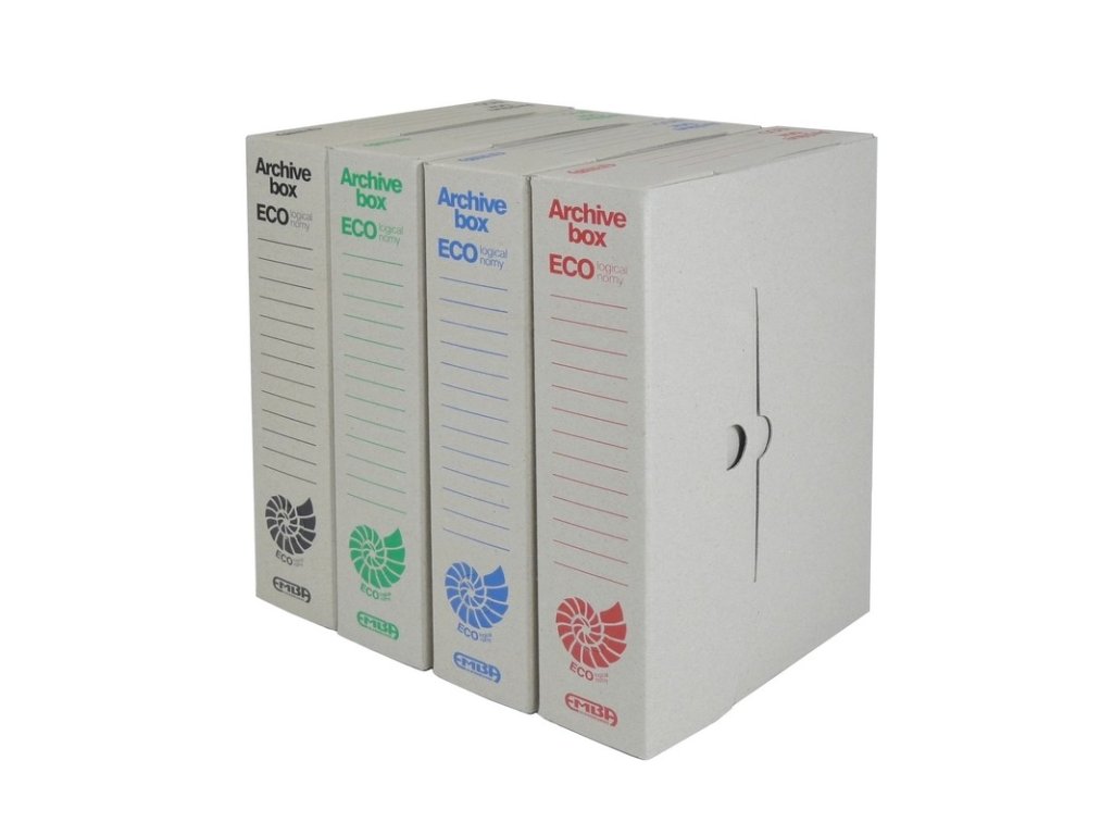 - Přírodní lepenková krabice z recyklovaného papíru pro spolehlivé uložení dokumentů.