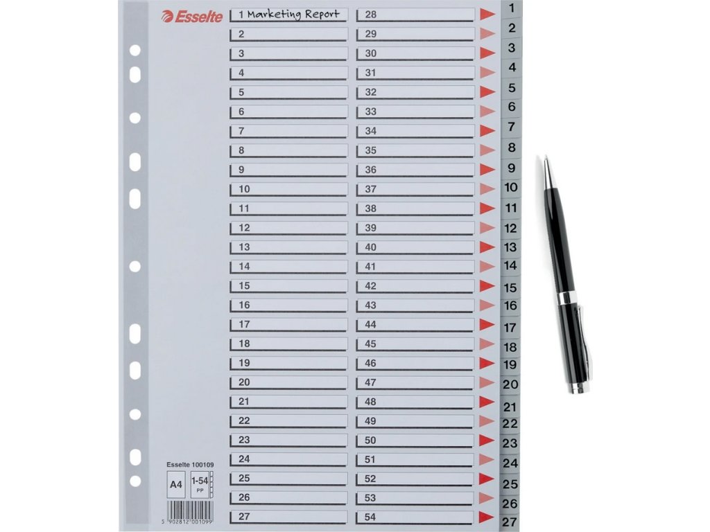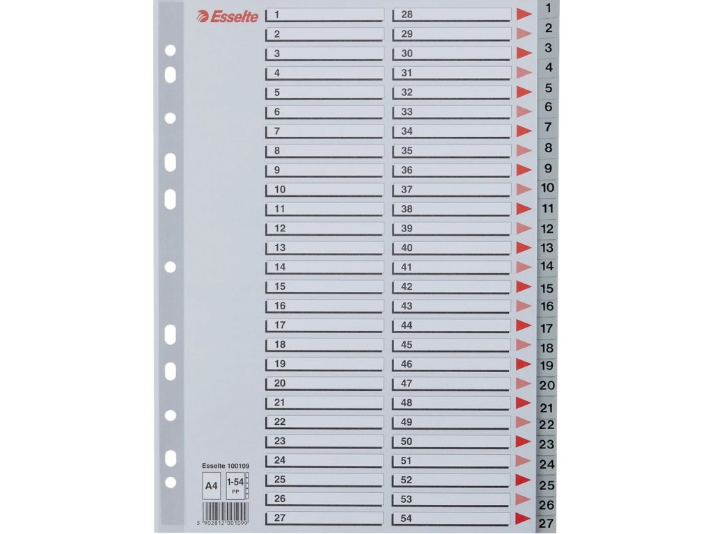 Esselte Maxi Rejstřík A4 PP šedý 1-54, číselný