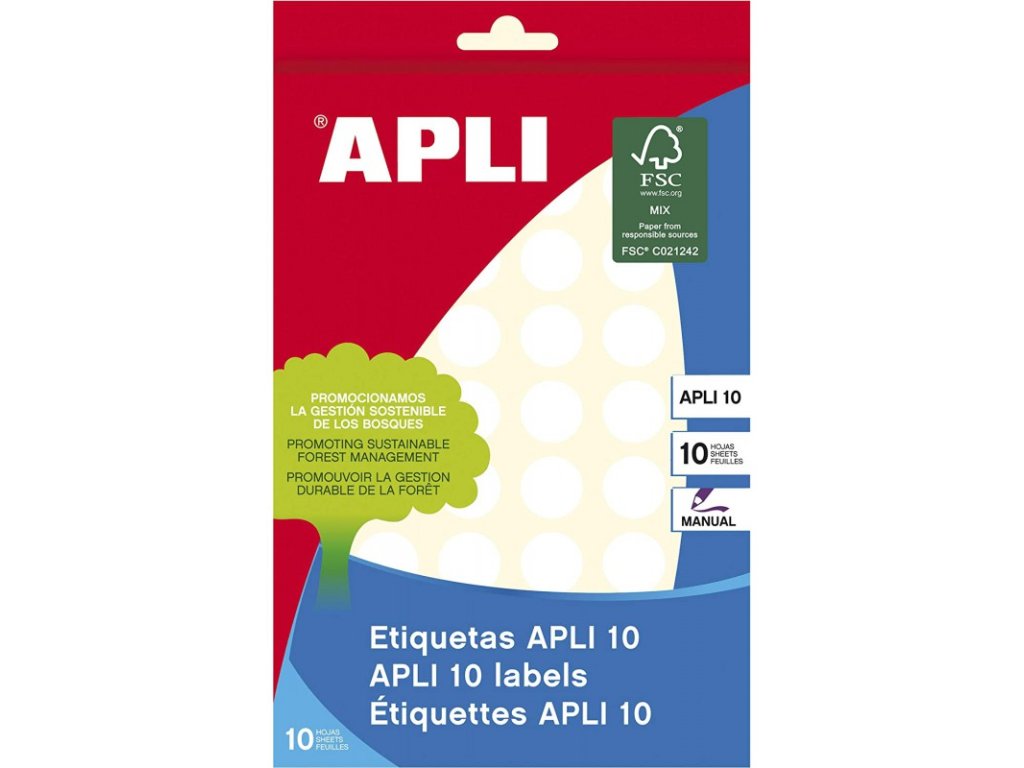 Etikety APLI kulaté bílé, průměr 16 mm, 540 etiket