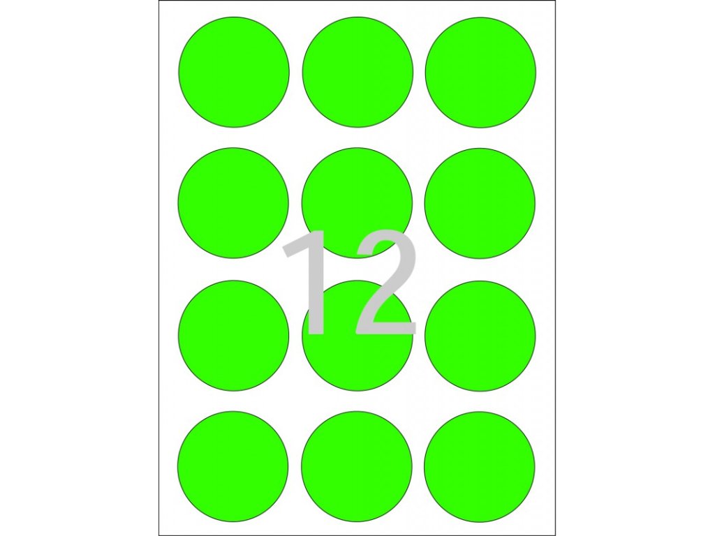 Etikety APLI kulaté fluorescentní zelené, barevné, průměr 60 mm, 240 etiket