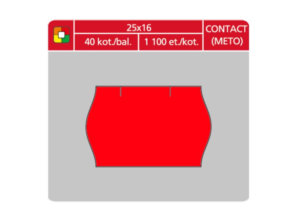 Etikety cenové S&K 25x16 Contact červené, oblé okraje, 1100 ks