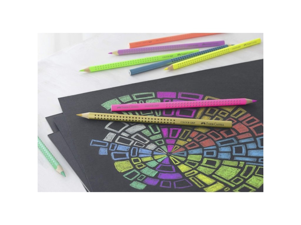 - Pro starší děti jsou vhodné pastelky Colour Grip s ergonomickým trojhranným tvarem a patentovanou Grip zónou s malými masážními a protiskluzovými body.